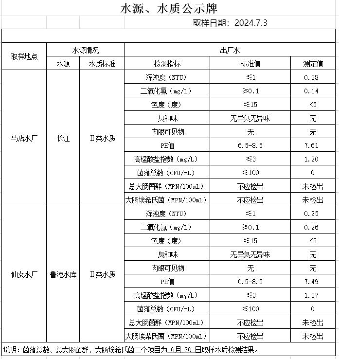 2024年7月2日水質(zhì)公告