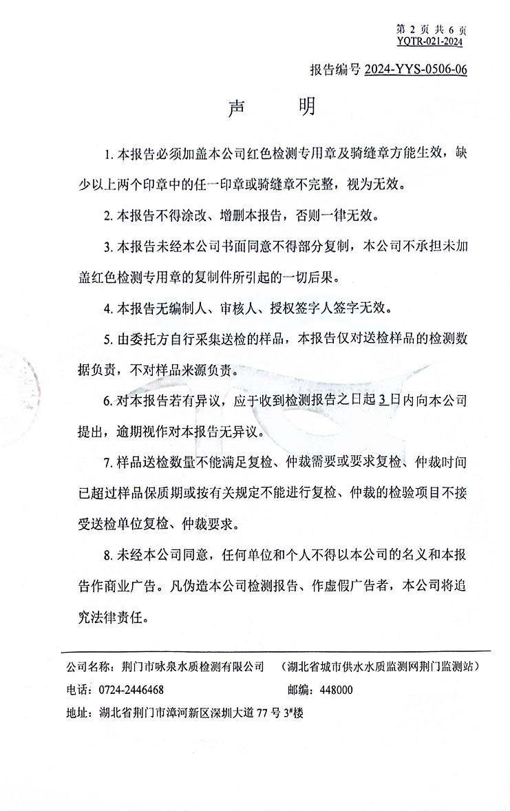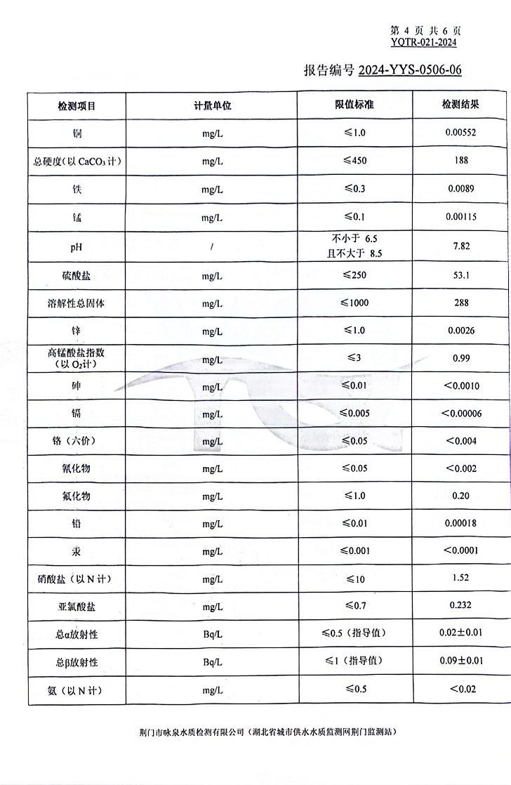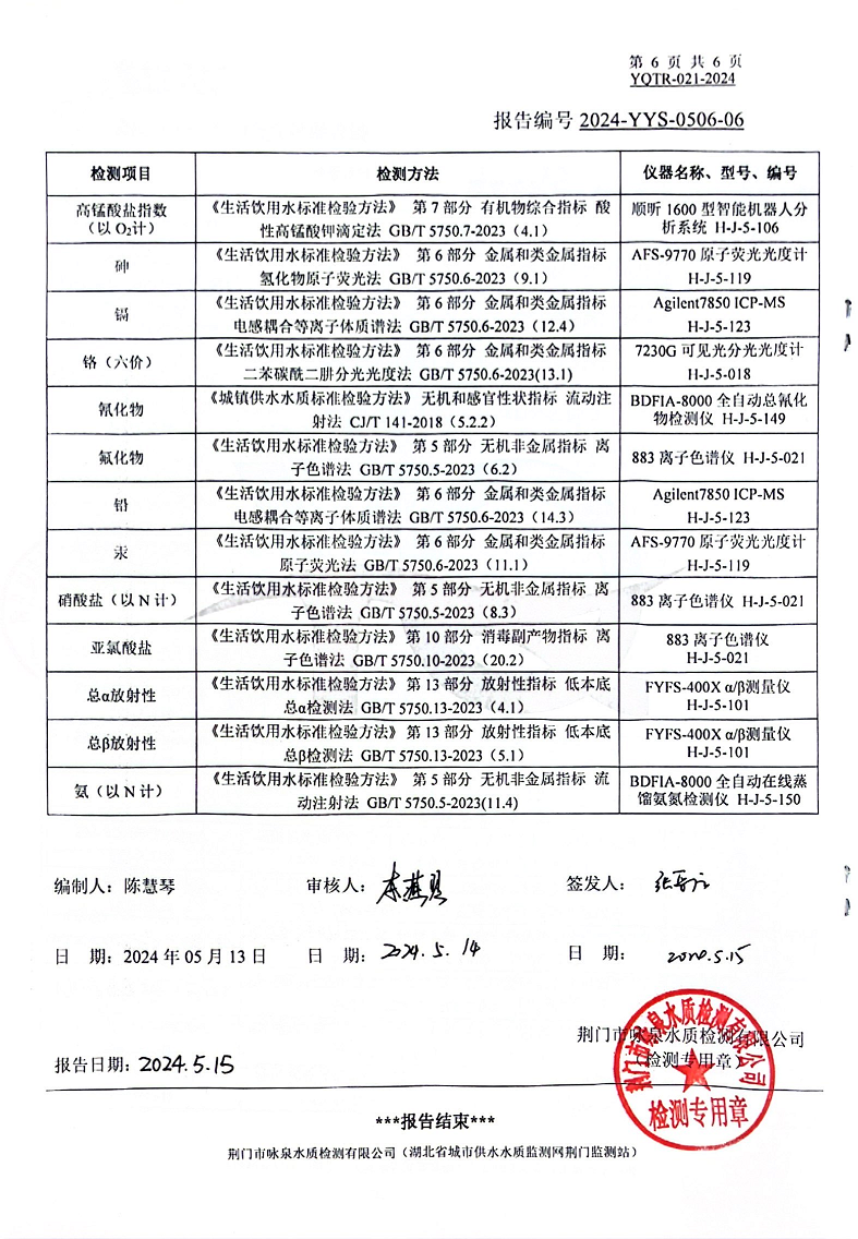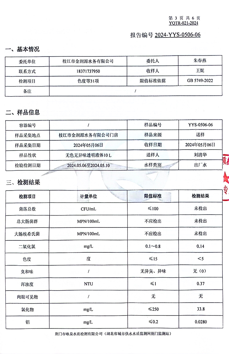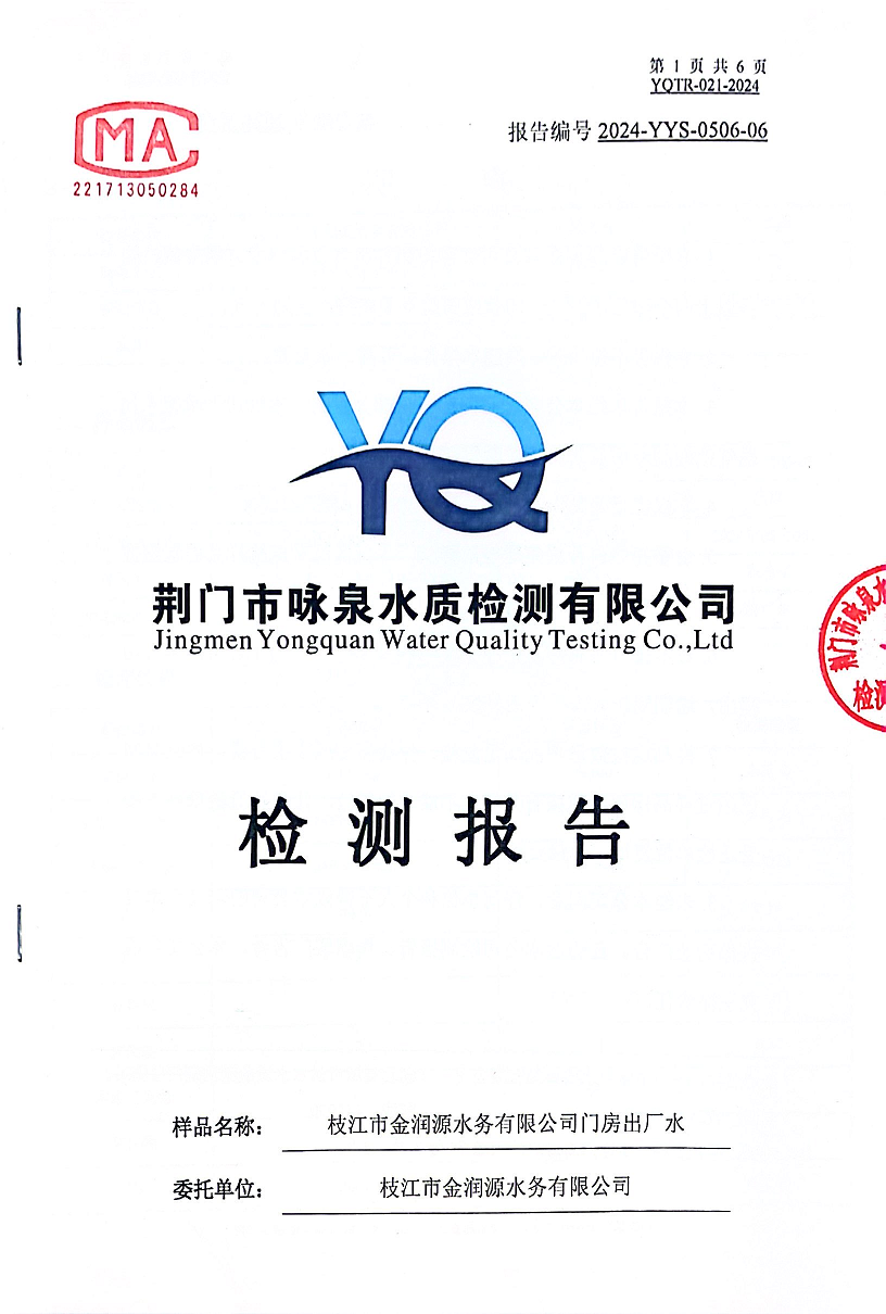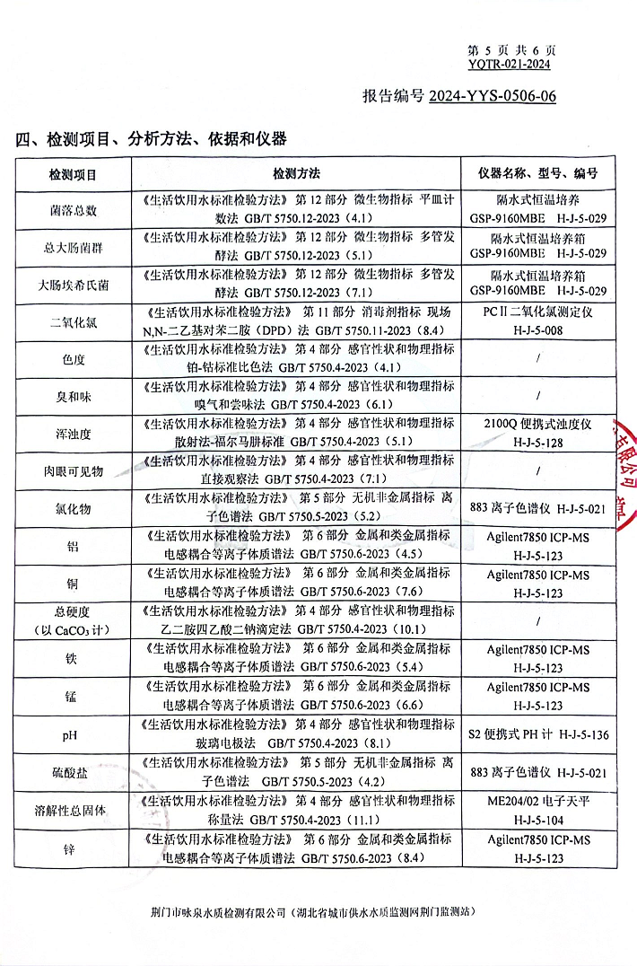2024年5月出廠(chǎng)水水質(zhì)報告