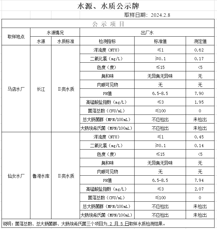 2024年2月8日水質(zhì)公告
