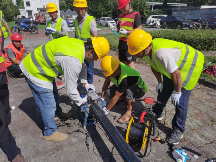 此次比武主要包含管道焊接、水表安裝2個(gè)項目,要求焊接的管道管材需光滑平整、無(wú)氣泡無(wú)裂紋無(wú)脫皮、切割平整、管軸線(xiàn)垂直、熱內接適度;水表安裝需連接嚴密、牢固,不漏水,與管道水流方向一致,上下游應裝有控制閥門(mén)。