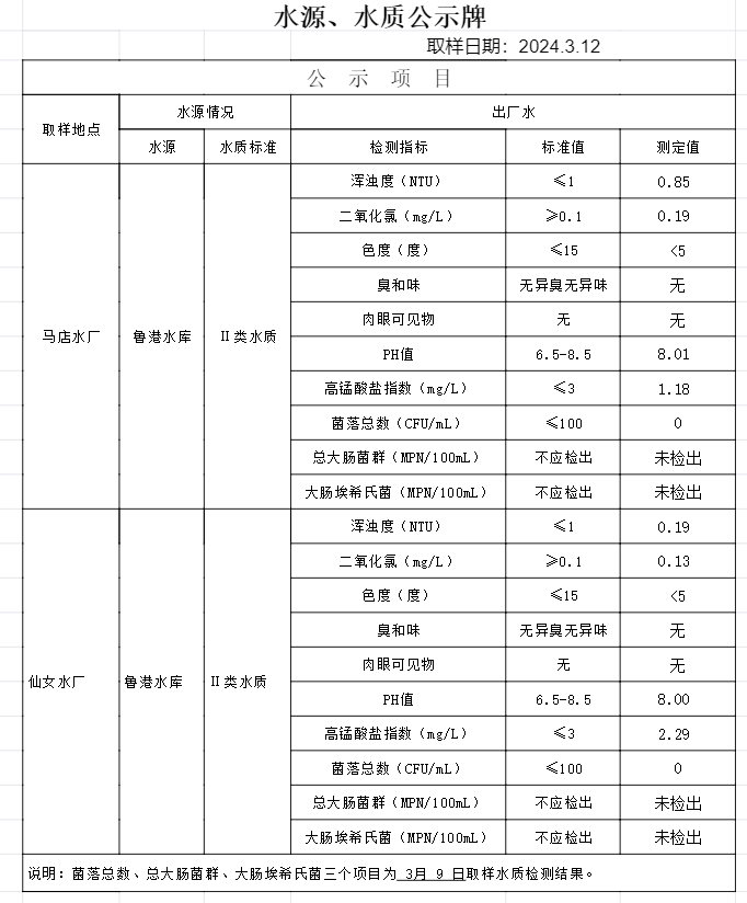 2024年3月12日水質(zhì)公告
