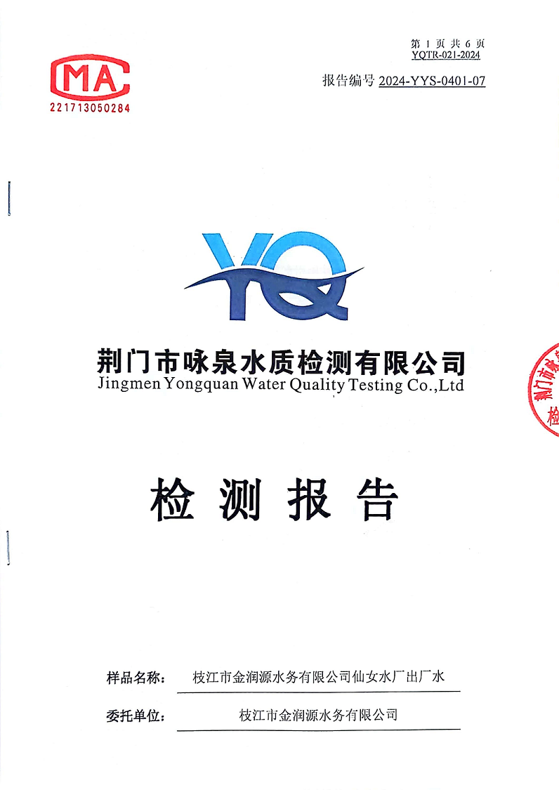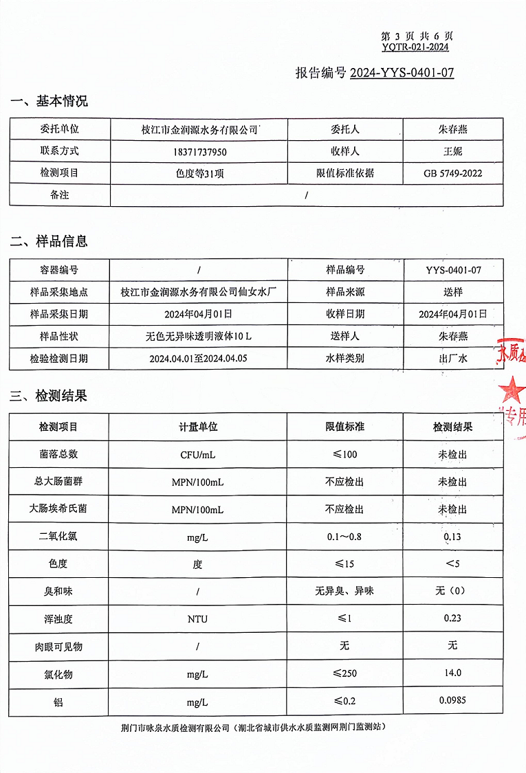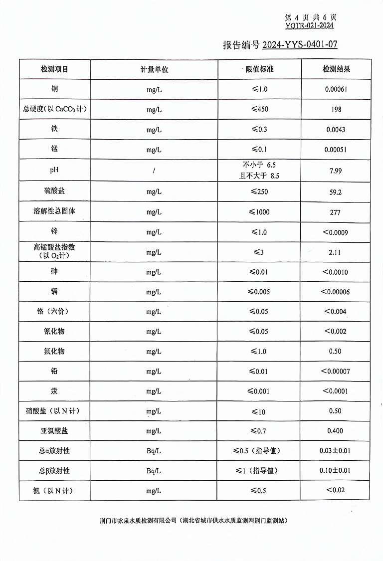2024年4月出廠(chǎng)水水質(zhì)報告