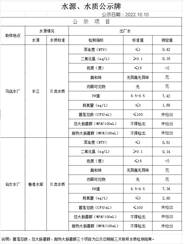 2022年10月10日水質(zhì)公告