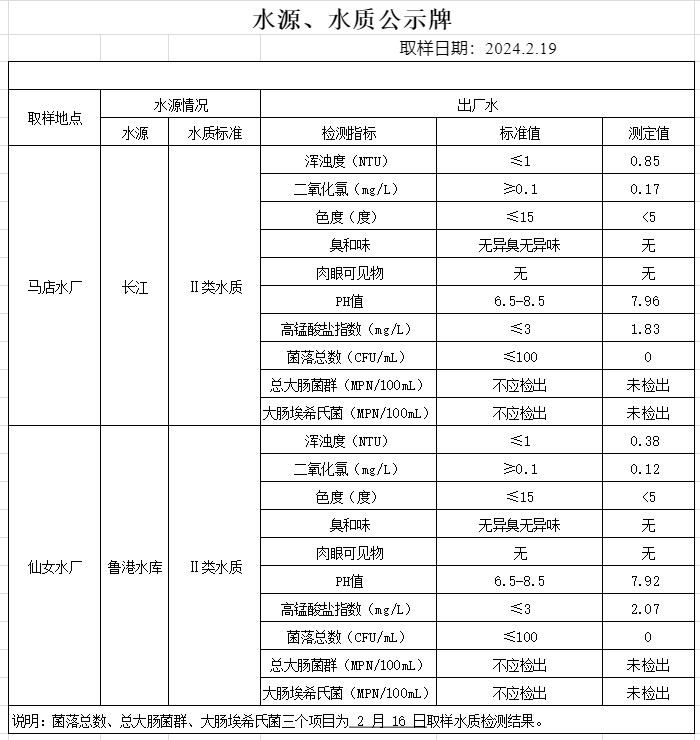 2024年2月19日水質(zhì)公告