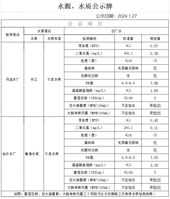 2024年1月27日水質(zhì) 公告