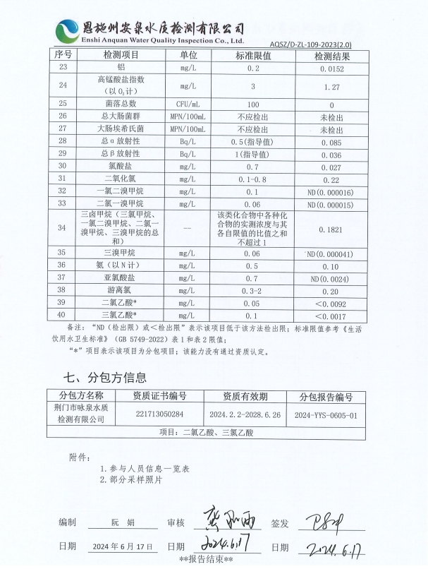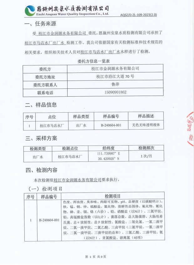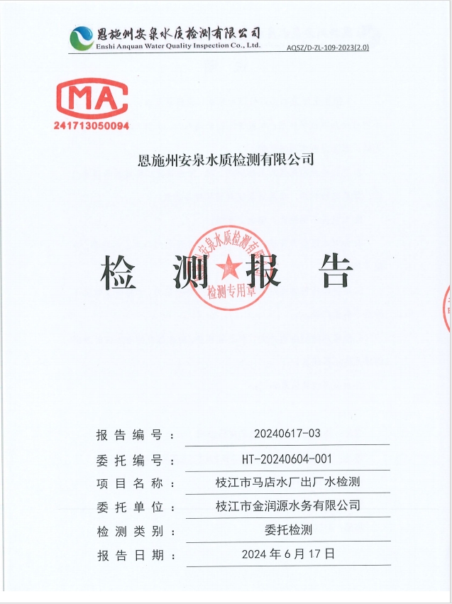 2024年6月出廠(chǎng)水水質(zhì)公告